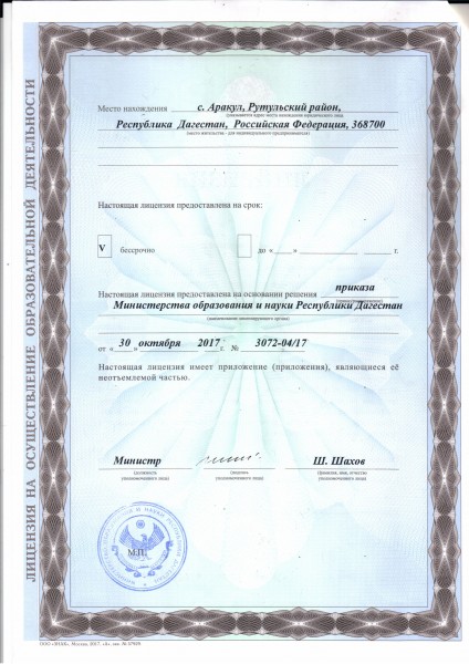 | Адрес местонахождения образовательной организации* | 368700, республика Дагестан, Рутульский район, село Аракул, ул. Дж. Абдуллаева, 2 |
